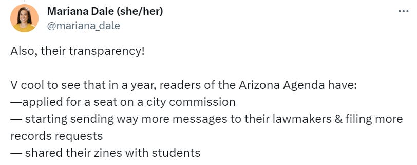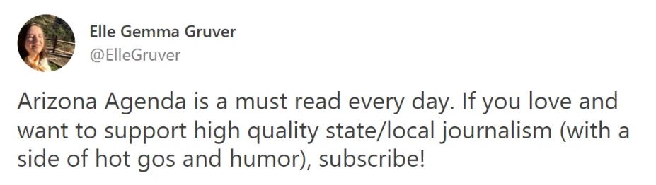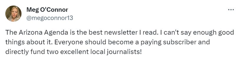 The Agenda started in 2021 as a two-person weekday newsletter. (Shout-out to our original co-founder, Rachel Leingang!) Thanks to your support, we’re growing into a statewide newsroom that covers all things Arizona politics.