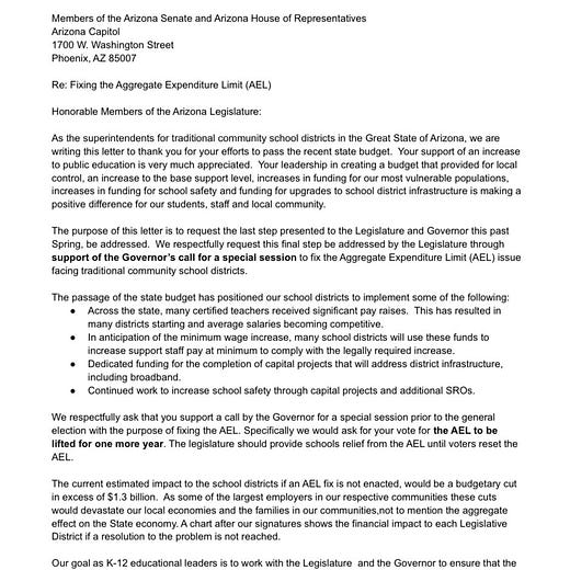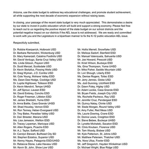 School superintendents have repeatedly lobbied the Legislature to fix the issue. Last year, they sought a special session after former Gov. Doug Ducey promised during budget negotiations to call one. Ducey failed to follow through.