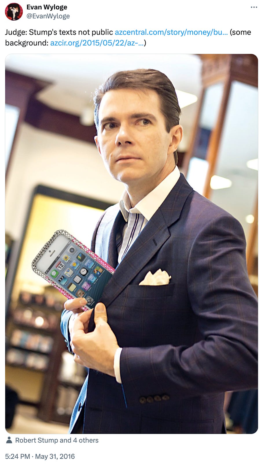 Also in 2014, commissioner Bob Stump was accused of deleting text message exchanges with APS on his state-issued phone after a public records request was filed. The request revealed that over a 10-month period, only one of Stump’s 232 emails was actually written by Stump, while 20,000 texts had been exchanged — strong evidence that he was conducting state business by text.2 After Stump left the ACC, he went on to found and work as executive director for the “Arizona Energy Policy Group” where he represents the interests of the same utilities he previously regulated.