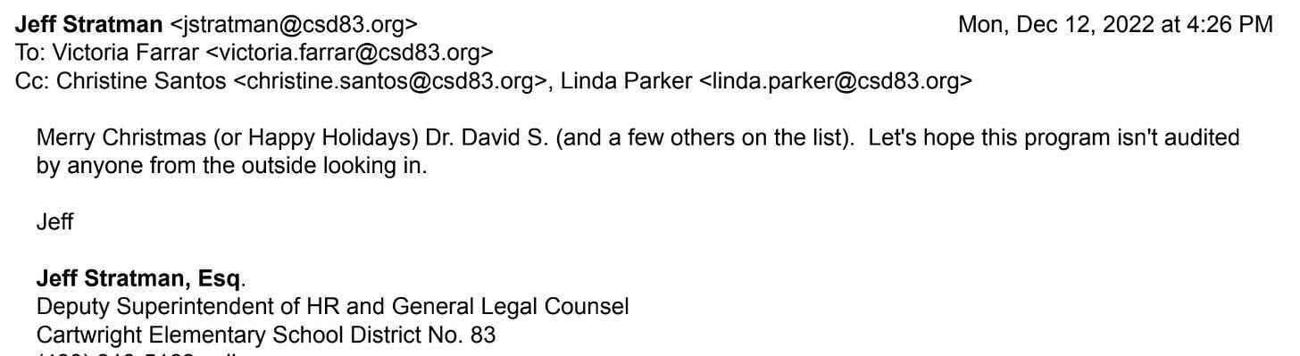Basically, the district appears to have paid out federal Covid funds as bonuses for educators and administrators as part of a “longevity pay program,” including to former employees who were no longer working at the district.