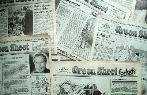 The love affair started early, learning how to read on my father’s lap, sounding out words in the Milwaukee Journal comics section. It was called the Green Sheet because it was dyed green and I thought it was cool to have my own section of the newspaper.