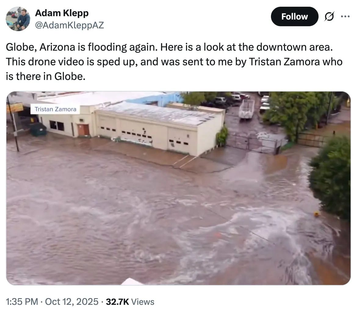 Rain, rain go away: Just weeks after the city of Globe faced catastrophic floods, storms over the weekend brought another round of excessive flooding, AZFamily’s Lauren Kobley, Alexis Dominguez and Brian Petersheim Jr. report. The latest flood left overflowing bridges and worsened structural concerns in the Globe and Miami areas. Globe Mayor Al Gameros said residents and businesses were more prepared for this round of rainfall, with many sandbagging their properties.