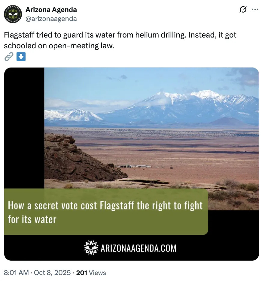 Last week, we told you about Flagstaff’s failure to follow the Arizona open meetings law — and how that failure to follow the law cost the city its lawsuit attempting to keep a company from opening a helium mine right next to a protected water source.