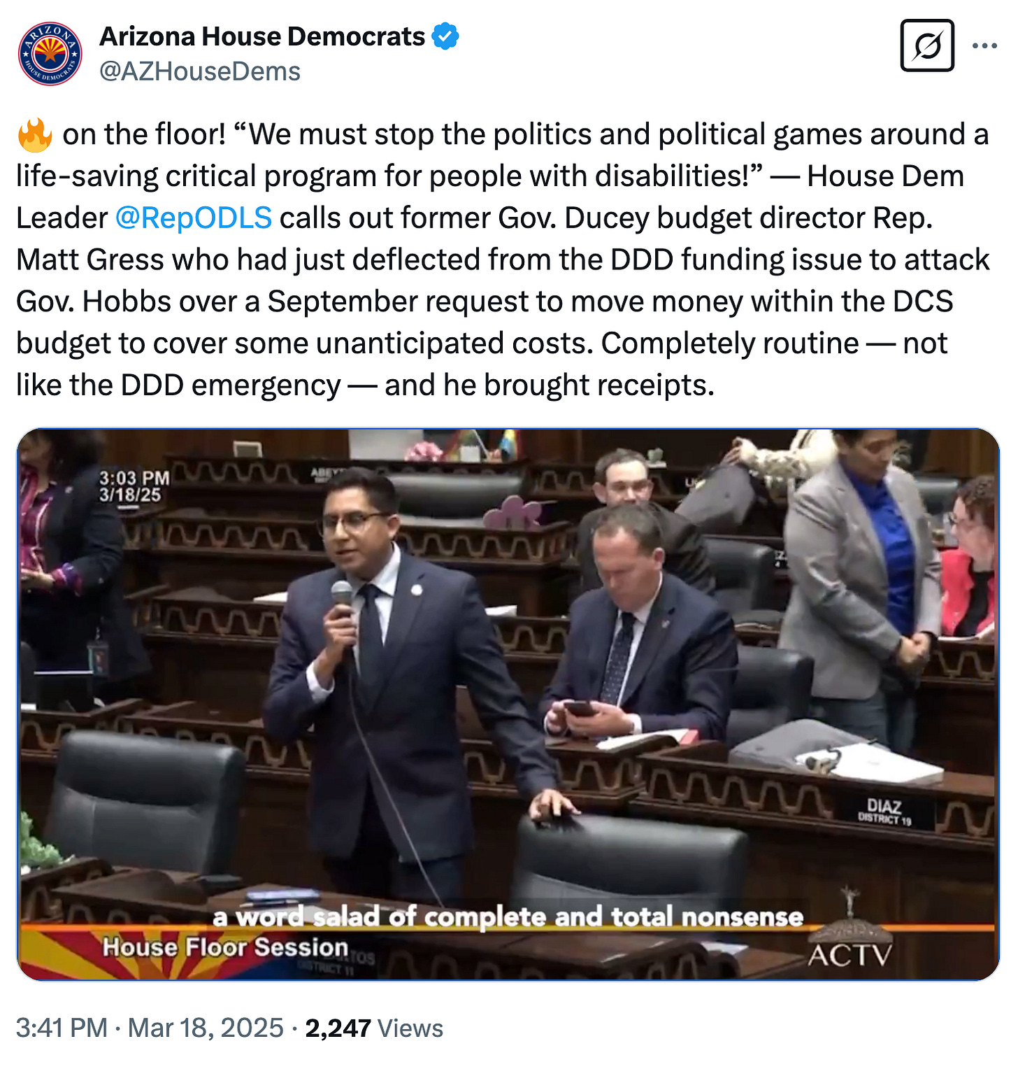 Hobbs says lawmakers are “lying to their constituents and weaponizing routine budget processes” as they refuse to protect Arizona’s most vulnerable citizens. She accused Republicans of using disabled people and foster children as political pawns in their attempts to make her look bad.