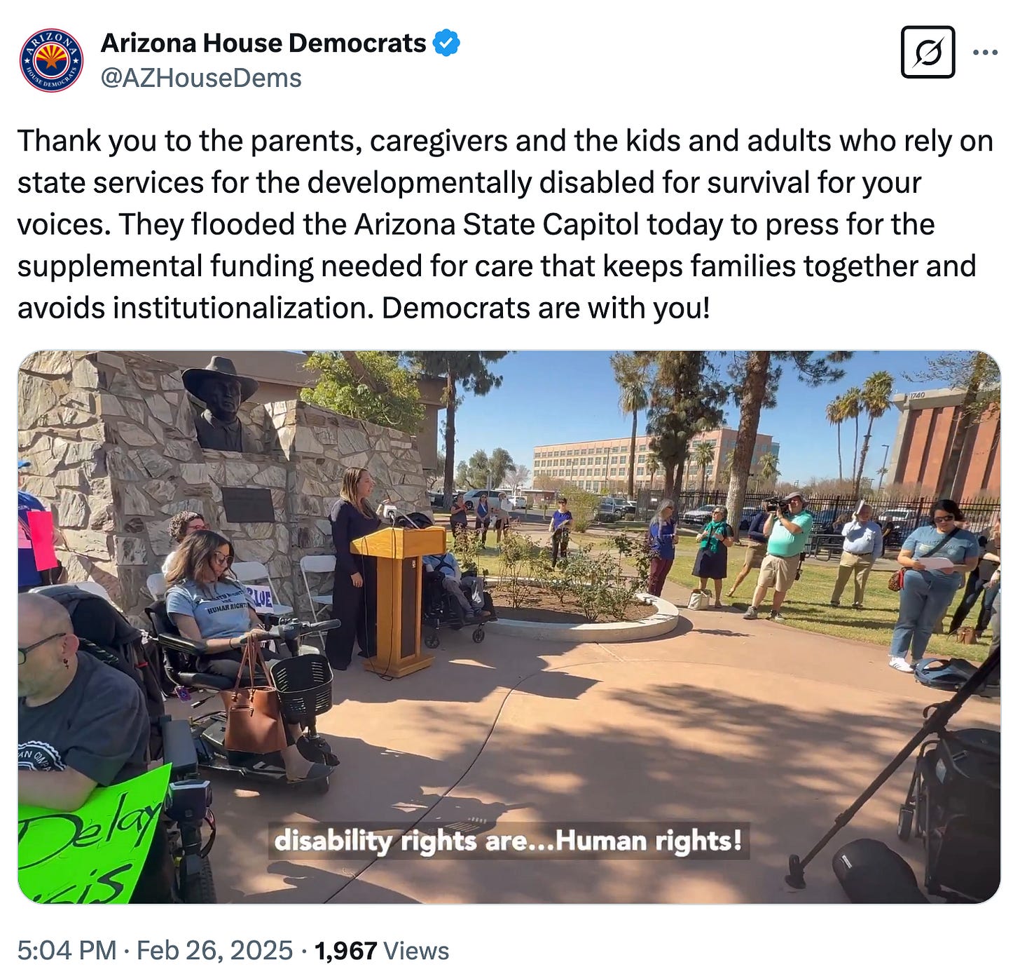 “Sadly, this reckless majority continues to use people with autism, Down syndrome, and cerebral palsy as their political pawns,” Hobbs said in her own statement. “They have called for ‘reforms’ but have suggested none, they want to ‘negotiate’ solutions in a budget, but refuse to show Arizonans their plan.”