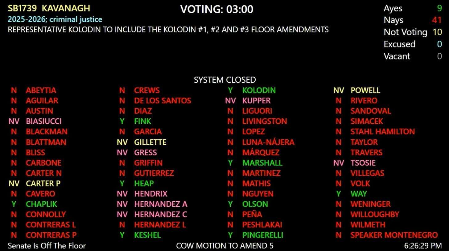 “This will do severe damage to Republicans, and it’s a shame a Republican body is passing it,” Kolodin told his colleagues. “And the reason Republicans are passing it is there is a lack of backbone in this Republican body.”