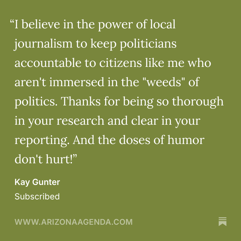 The Agenda has (almost) never put up a paywall.1 We provide this daily blast of Arizona politics and government news for free to anyone who wants it.