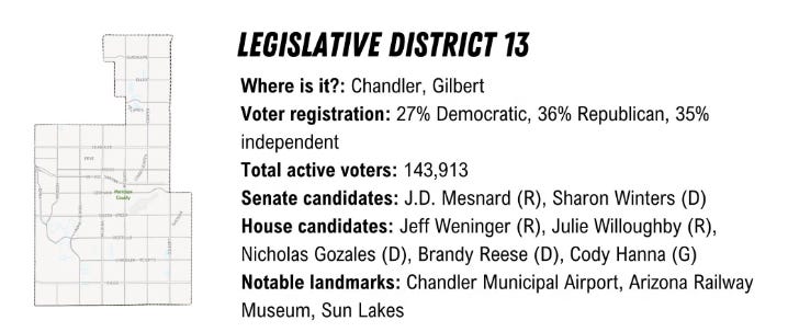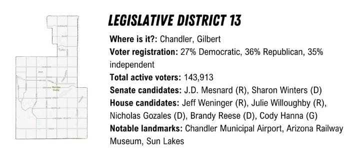 Democrats have long acted cautiously in this purple district, nominating only one candidate for the state House in an attempt to overcome the district’s Republican advantage. But this year, they’re playing for keeps, nominating two candidates for the two House seats — a move that could either boost their chances of taking the state House or cost them a seat in the district which covers parts of Chandler and Gilbert.