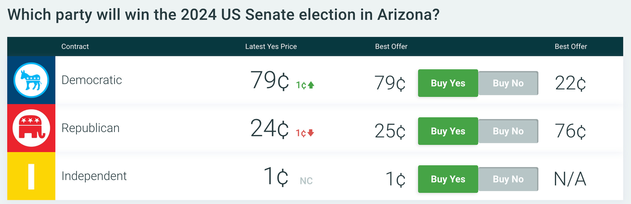 Risky bets: The crypto industry is suddenly one of the biggest spenders in Arizona’s congressional races, the Republic’s Laura Gersony reports. The industry now accounts for one out of every six outside dollars spent in Arizona’s federal races, and its spending rivals that of groups like the League of Conservation Voters. Meanwhile, political betting markets were briefly legit late last week as a federal district court allowed a company to facilitate regulated trades. An appeals court quickly halted the trades for now but the district court ruling “has essentially opened the door for legal gambling on politics,” the New York Times writes.