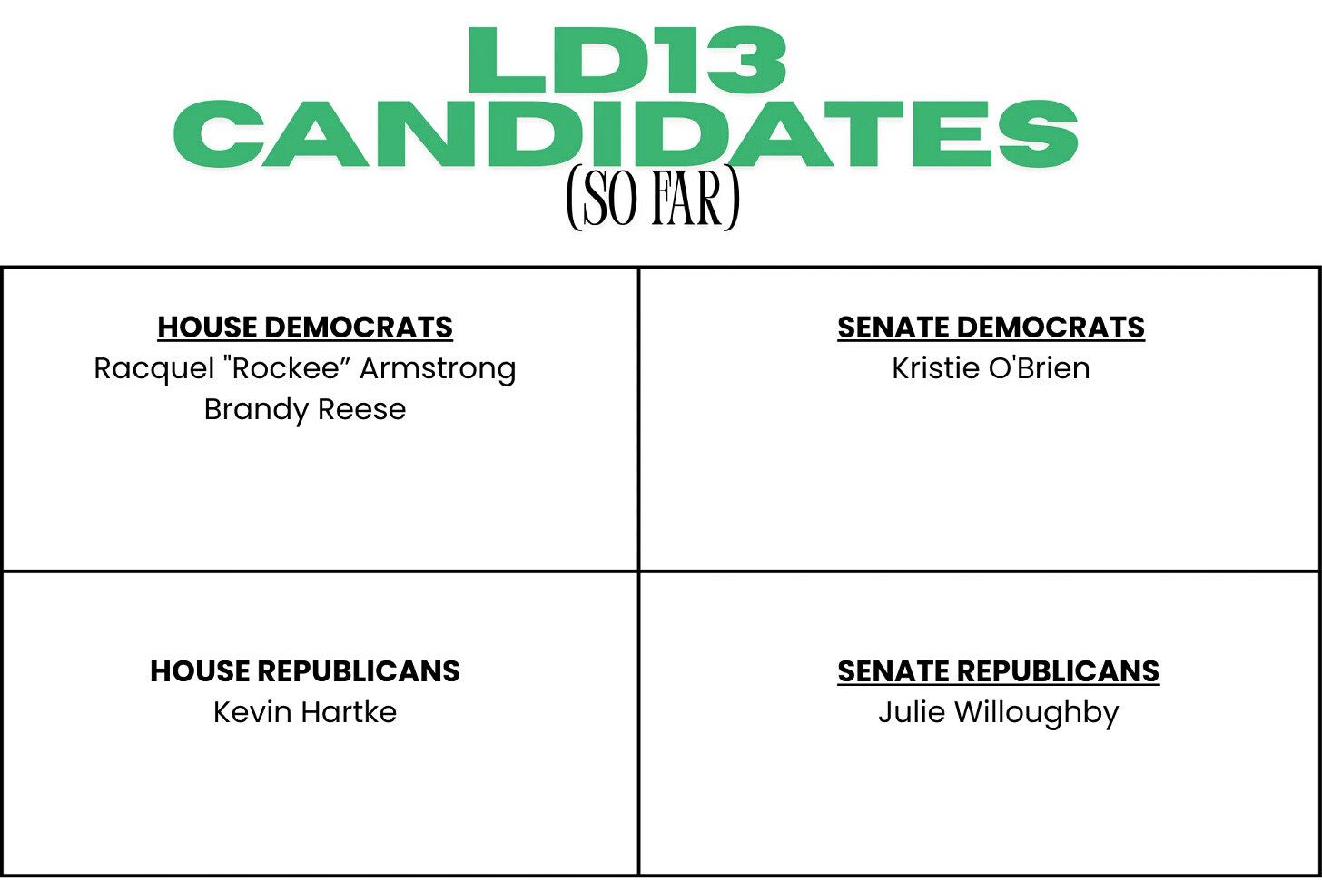 LD13’s other House member, Republican Rep. Julie Willoughby, is attempting to switch chambers to the Senate next year. She’s not termed out yet, but LD13 Republican Sen. J.D. Mesnard is.