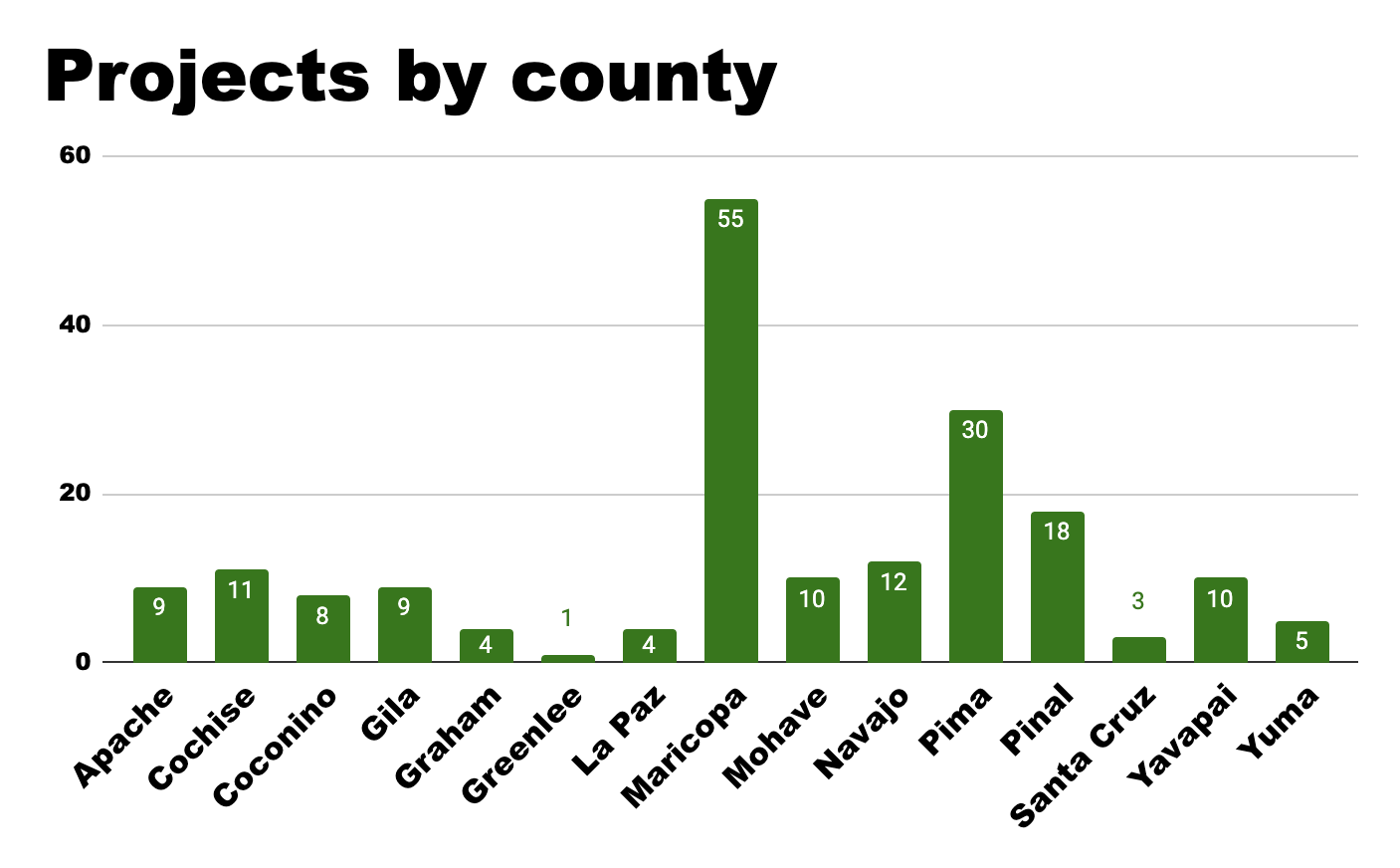 Entities in Maricopa County got the most projects at 55, while Greenlee’s town of Duncan got one project to replace corroded pipes and install a system to detect leaks and automate data.