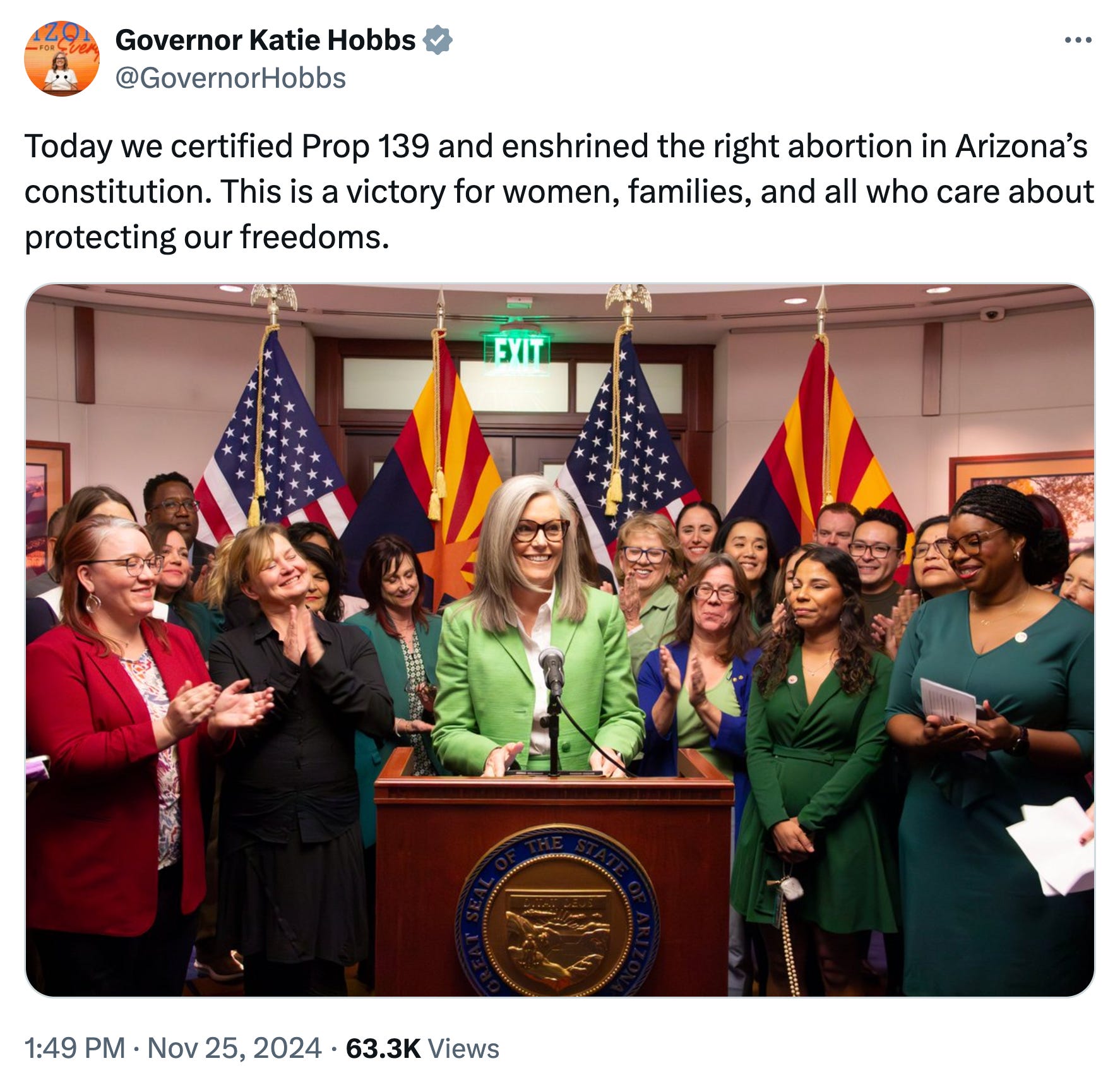 Abortion is still a winning issue in 2024, with Prop. 139 passing with over 60% of the vote.