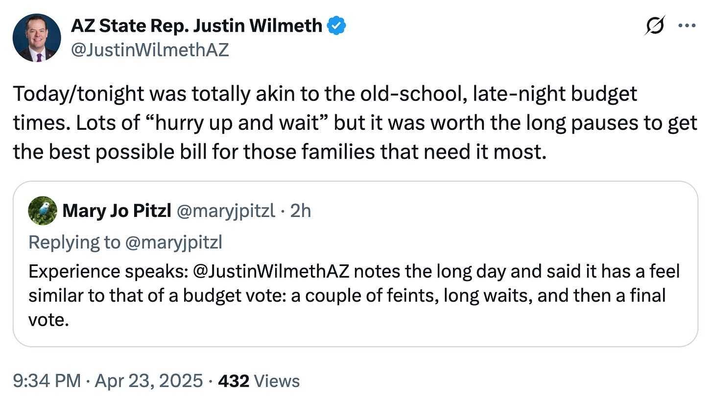 Might we suggest bamboo fibers?: Mohave County wants to use ballots with watermarks or “special fibers” in 2026 so election officials can ensure they’re real (even though there’s never been an actual case of mass fake ballots), Votebeat’s Jen Fifield reports. It’s part of a scheme that Republican Sen. Mark Finchem has been pushing for years — but at least the county is contracting with a company that doesn’t have ties to the election-denying senator. Meanwhile, a Republican plan to get rid of “voting centers” and go back to neighborhood voting locations would cost counties about $53 million in the first year, per the Arizona Mirror’s Caitlin Sievers. Republican lawmakers are trying to bypass the governor and ask voters in 2026 to approve their plan instead.