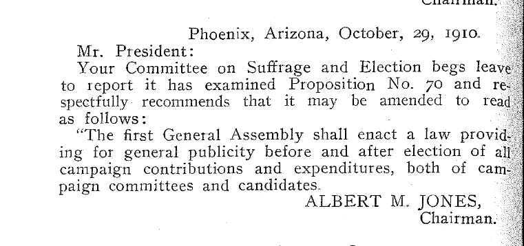 The state’s founders put a provision in Arizona’s Constitution requiring the “general publicity, before and after election, of all campaign contributions.”