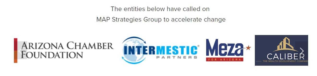 The website for MAP Strategies Group — which Parrish started with her husband, David Parrish, a Pulitzer-winning reporter, and Mark Nothaft, a fellow former Republic employee — looks like a NASCAR stock car: It’s plastered with logos of Arizona’s most powerful, and political, companies.