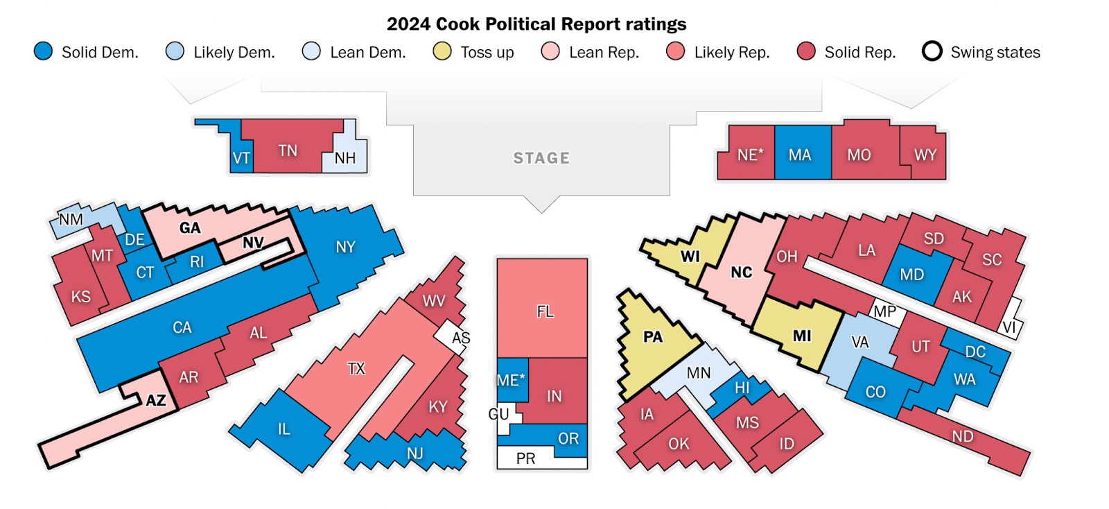 The nosebleed seats are a rarity for swing state delegates, and many of them saw it as a punishment for last month’s disloyalty.