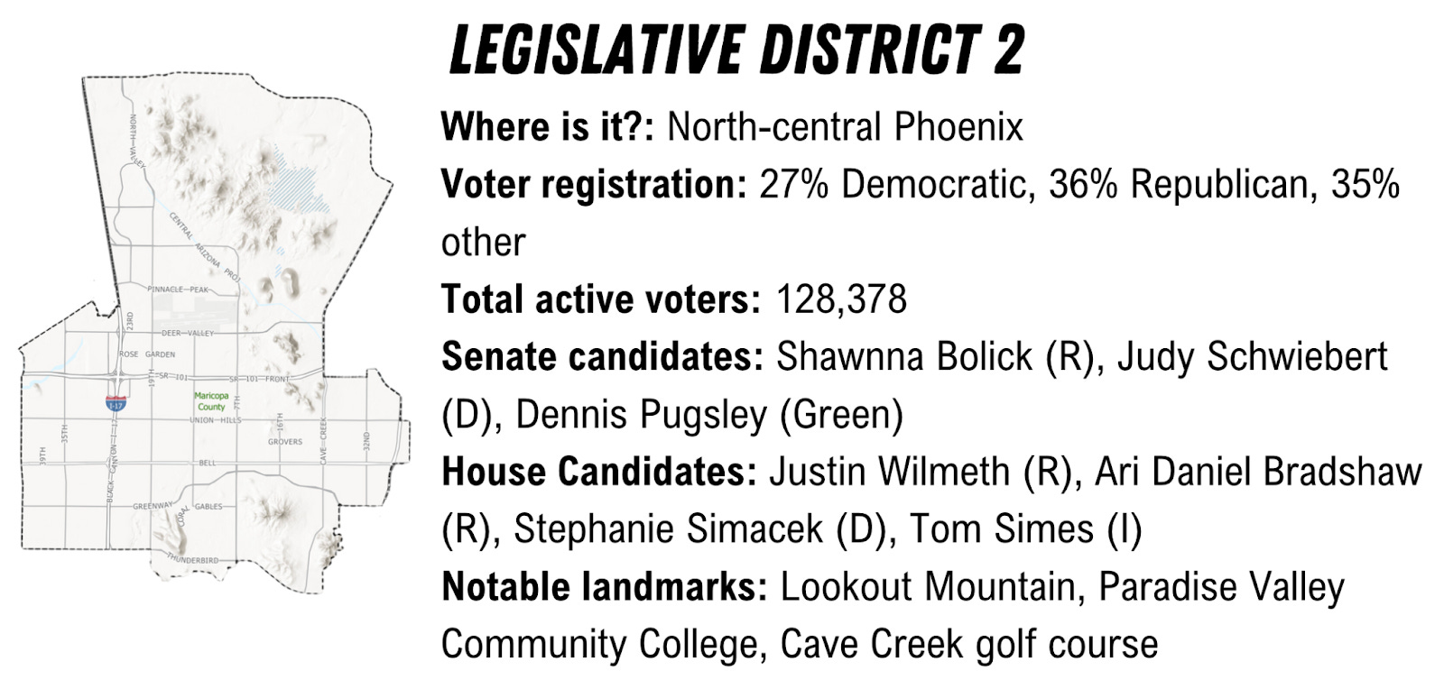 First up, Legislative District 2. Sen. Shawnna Bolick is fighting off a challenge from current LD2 Rep. Judy Schwiebert.