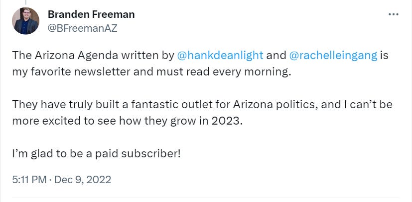 This month, we’ve been turning the Agenda over to some other Arizona-based newsletters, introducing our audience to a few fantastic Substack colleagues. (Some of our other Substack colleagues, however, didn’t make the cut.)