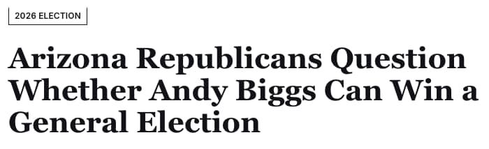 As we were thumbing through our usual stack of morning news links, we came across a story in Notus quoting a bevy of Republican consultant types about whether U.S. Rep. Andy Biggs can actually win a general election for governor in Arizona.