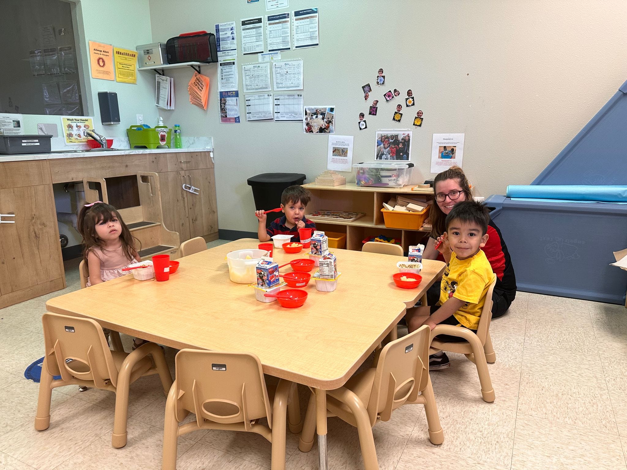 Parents escort their kids to their classrooms, sign them in for the day and can use a changing center at the back of the room with the diapers and formula the center provides.