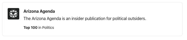 We did notice that our little badge thing says we’re in the top 100 of politics Substacks. We didn’t have that before; we don’t know how many there are in our category overall. But we’ll choose to believe that we’re moving up in the world.