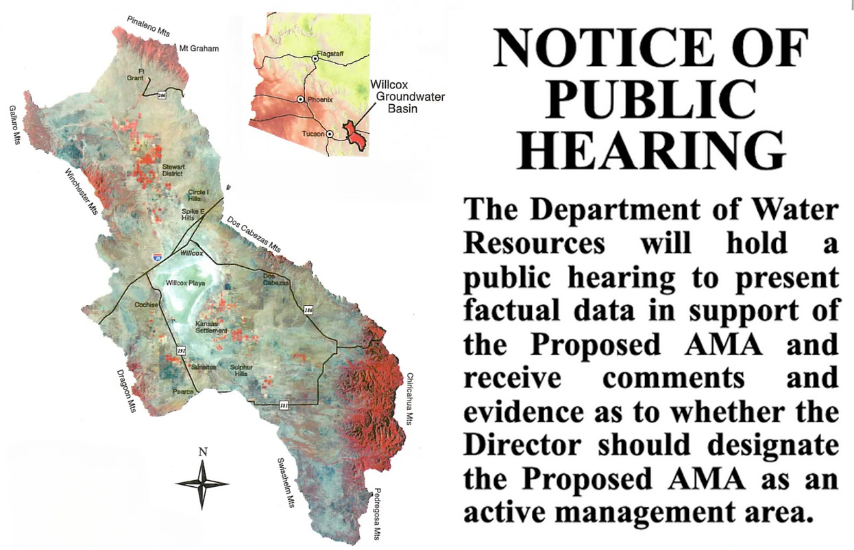Next month, as required by law, the ADWR will hold a public hearing where citizens can express their support or opposition to a Willcox AMA designation. The agency then has another 30 days to decide whether to finalize the AMA designation or abandon it.