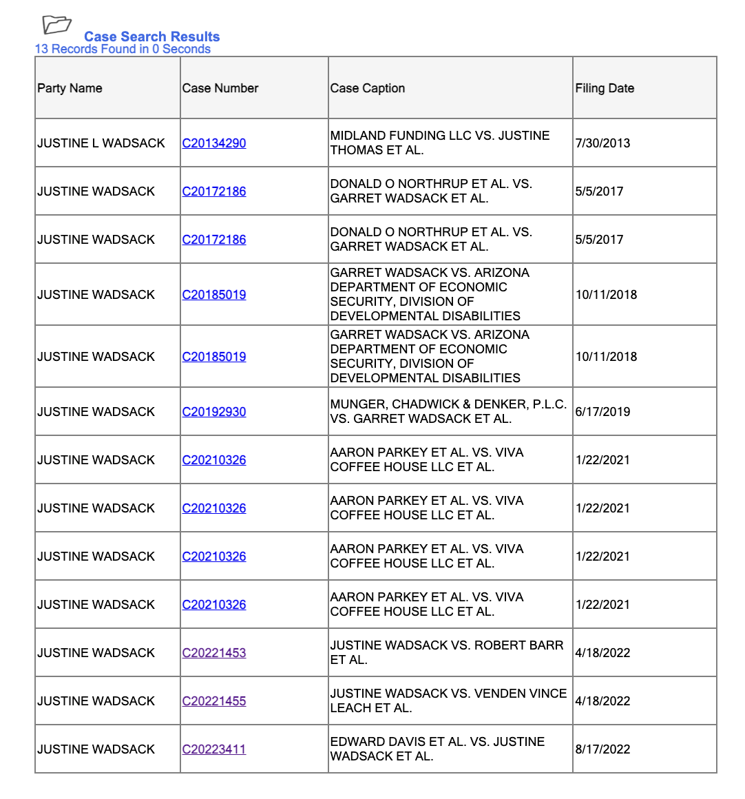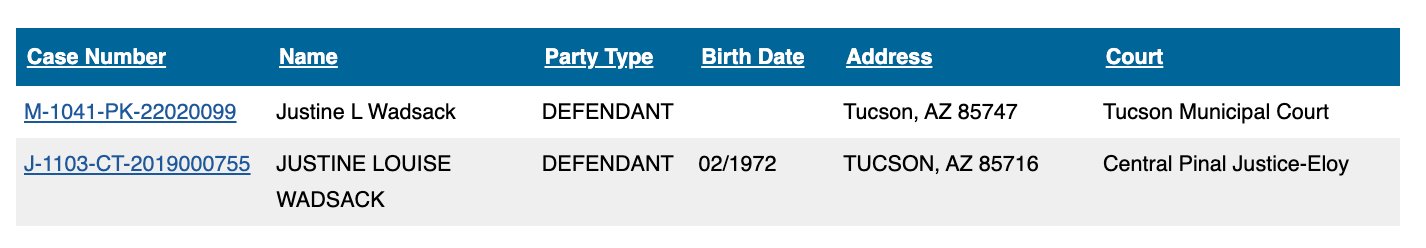 For example, searching for Republican Sen. Justine Wadsack pulls up a few petty infractions with the law – an expired registration case in Tucson Municipal Court, and a speeding ticket from Pinal County. You’d walk away from that search thinking “no big deal.”