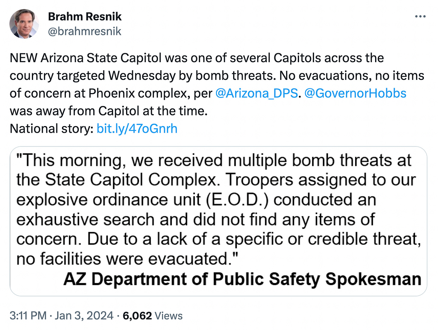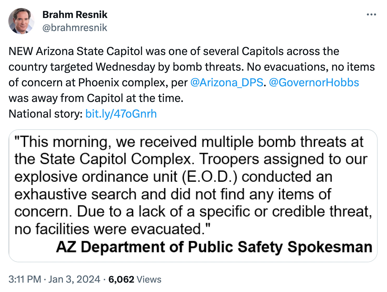 The first committee meeting of 2024’s legislative session will commence at 9 a.m. on Tuesday, Jan. 9, with the new Committee on Transportation, Technology and Missing Children headed by Sen. David Farnsworth. The “Missing Children” is a new addition Farnsworth is championing after previously pedaling bizarre child trafficking conspiracy theories. It’s not clear how the subject will fit into the pavement condition and ADOT project delivery topics on the committee’s first agenda.