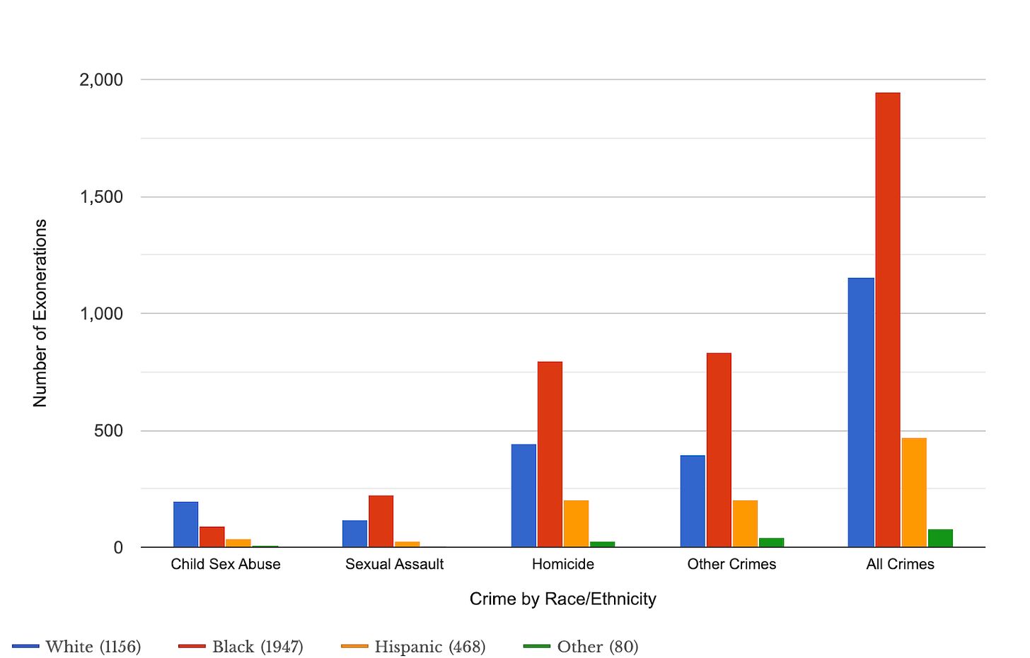 There is data on those who make it that far, however. Of the 153 wrongful convictions overturned across the United States in 2023, 84% of them were people of color, per the National Registry of Exonerations.