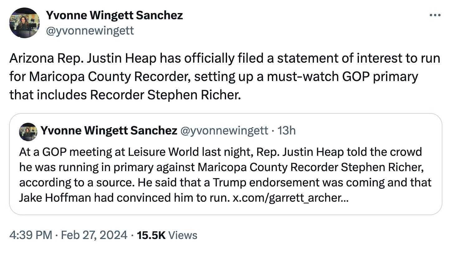 When Trump calls, she’ll fold: Rep. Debbie Lesko is leaving D.C. because she misses her family and sacrificing her time isn’t worth the lack of movement in Congress, she told Mike Broomhead on KTAR. Lesko said she’s familiar with the constituency in Maricopa County’s District 4 and is running for a position on the Board of Supervisors because it’s a “natural fit.” She spent most of the interview hitting Republican talking points about the border and said Democrats are only paying attention because it’s an election year.