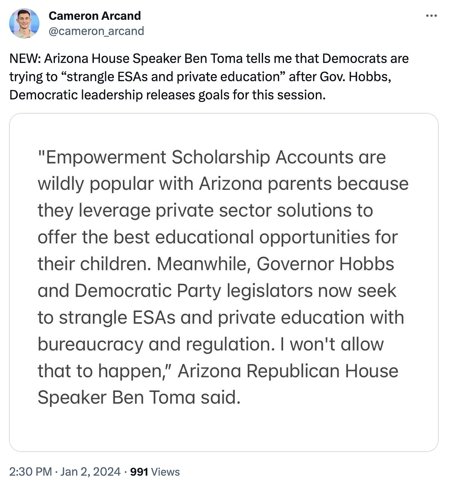 Of course, many of Hobbs’ proposals — like requiring students to attend public schools before receiving a voucher — are simply never going to fly with Republican lawmakers, who fought long and hard for a “universal” voucher program.