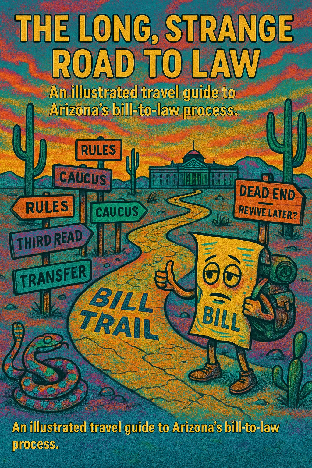 “The Long, Strange Road to Law” is our trippy little travelogue through the Arizona bill process — from its humble beginnings as an idea, to the procedural gauntlet it must survive, to its final showdown at the governor’s desk.