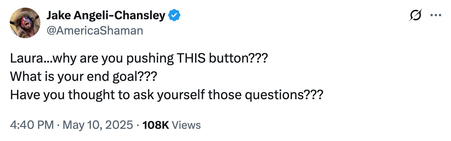 The whole thing spiraled into a back-and-forth so stupid that the QAnon Shaman got in on it.
