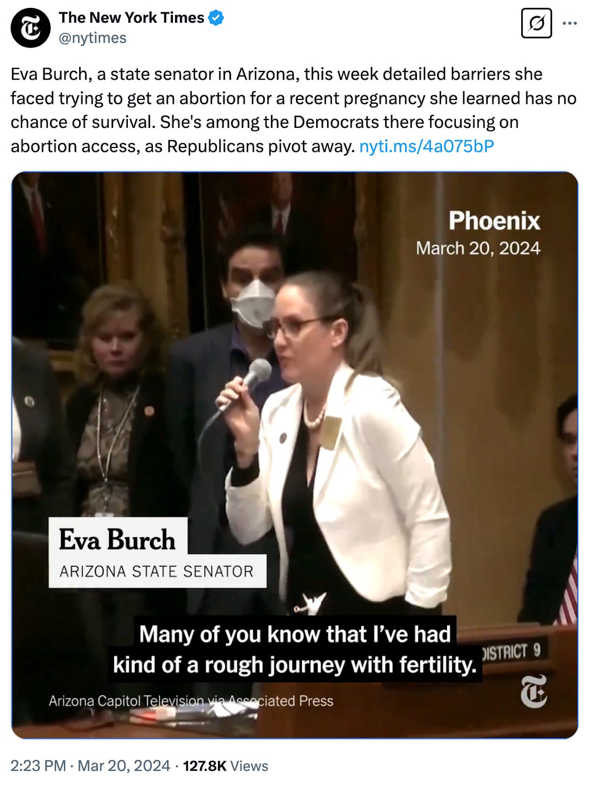 Other ways to serve: Democratic state Sen. Eva Burch, who represents a competitive Mesa district, announced she’s resigning from the Legislature, effective at the end of next week. Burch, who was first elected in 2022, blamed the low legislative pay and long hours that compete with her real job as a healthcare provider. Not to mention, as a Democrat in the Republican-controlled Legislature, she is “not in the best position to get things done.”