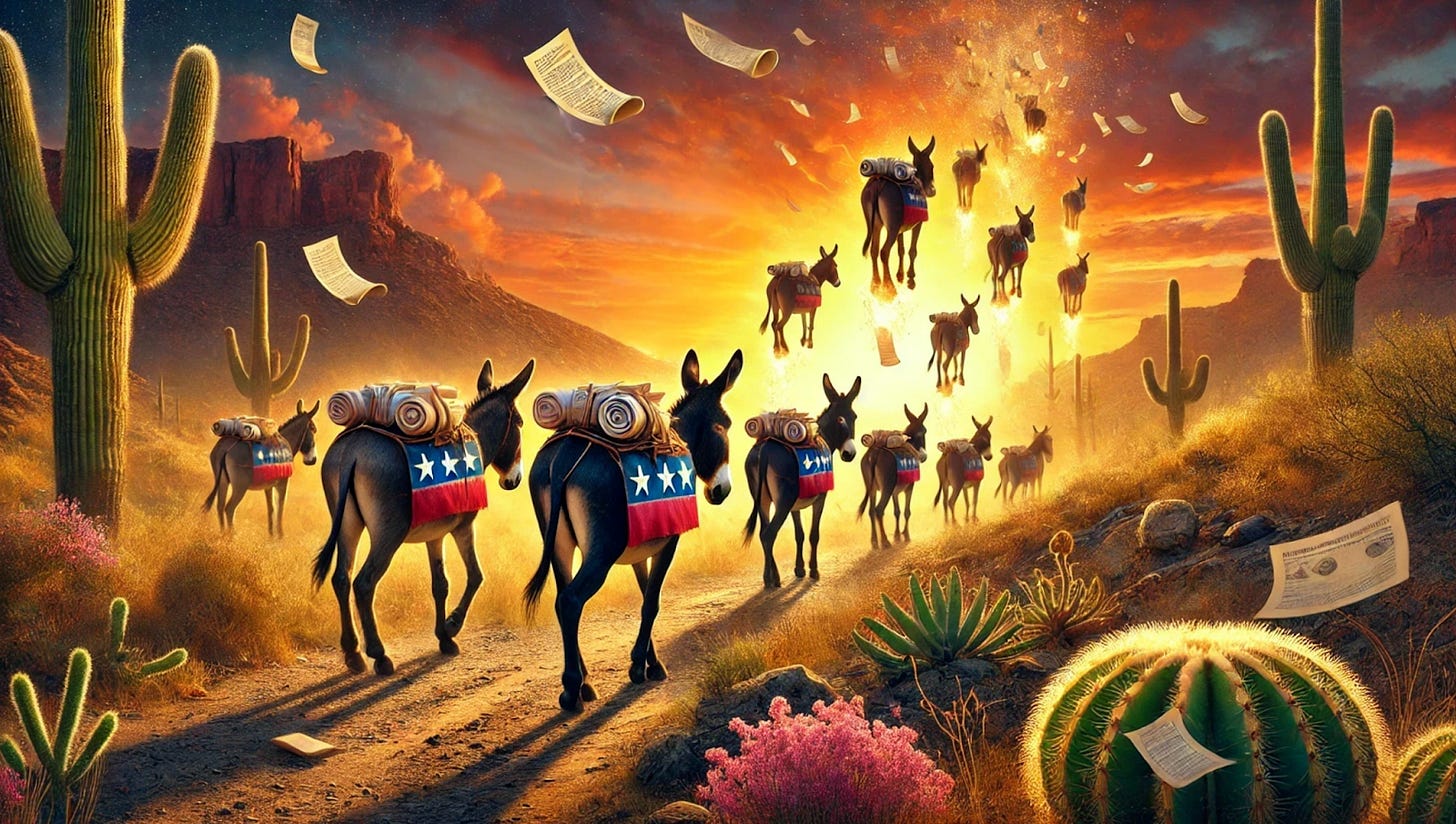 Our art intern, ChatGPT, calls this “Whispers in the Wind," a title that “captures the surreal and melancholic vibe of Democratic bills being carried away into the Arizona sunset.”Only about 55% of Arizona’s lawmakers are Republicans — but more than 97% of the bills that have received a vote at the Capitol so far this year were sponsored by Republicans.