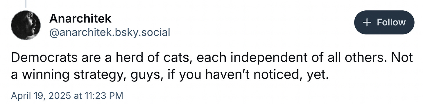 Democrats tearing down Democrats ... It's not even 2026 yet … And is anyone in charge here?