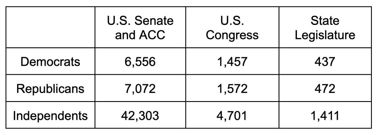 That’s why you rarely see independent candidates in statewide elections.