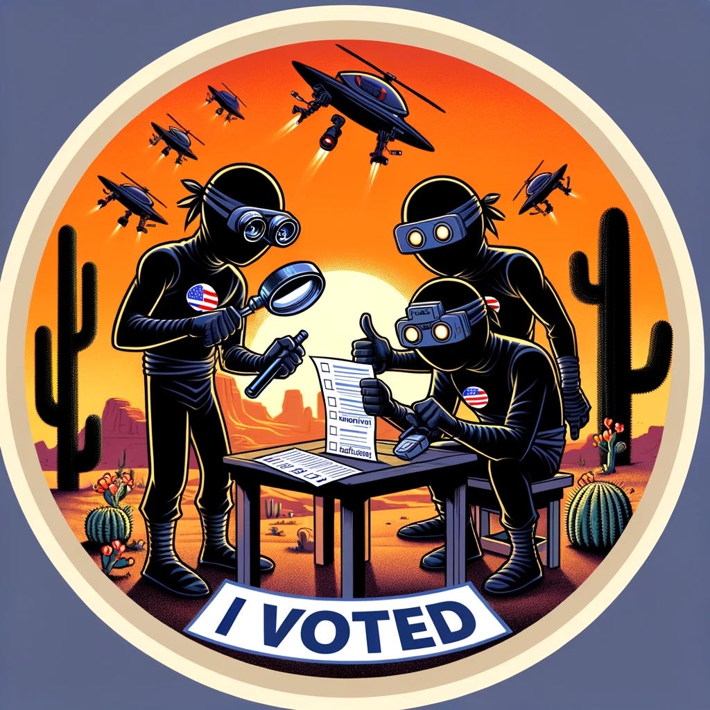 Our art intern, ChatGPT, requests your assistance in coming up with concepts for Maricopa County’s “I voted” sticker competition.