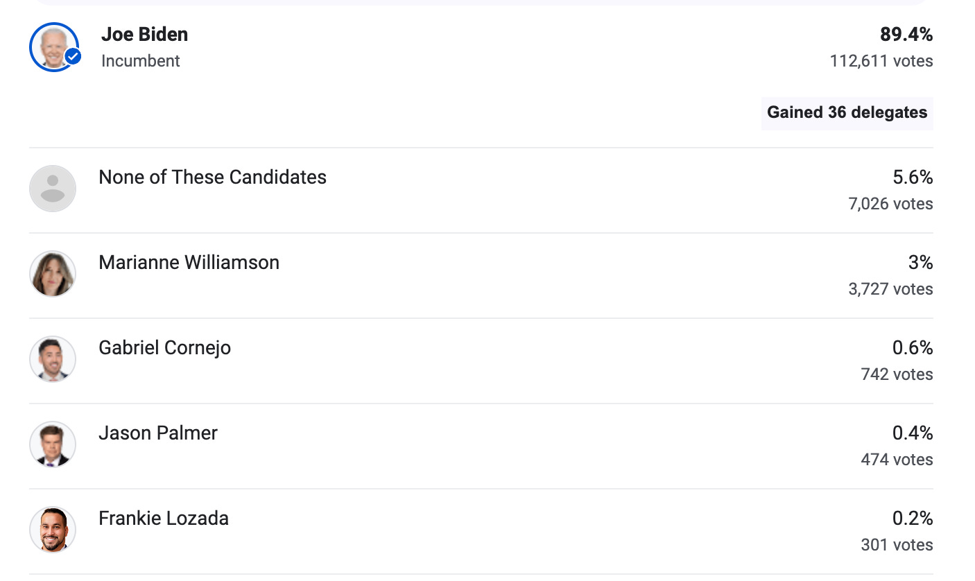 On the Democratic side, it’s also pretty slim pickings. But if you want to vote against Biden, here are a few of your options.