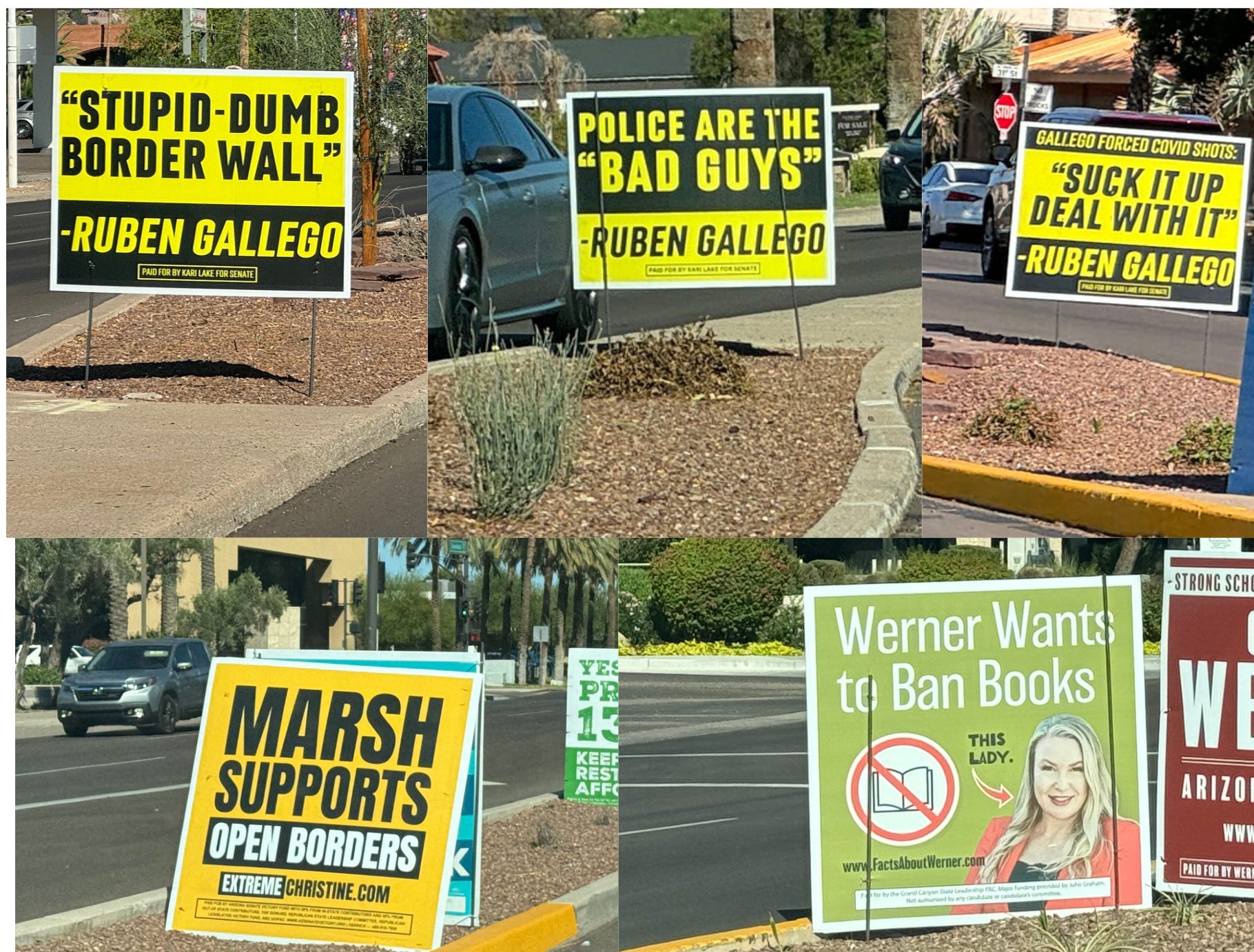 Speaking of Lake, lately, she’s been putting up nearly as many roadside signs attacking Gallego as signs promoting herself. That tells us she knows she’s in trouble.