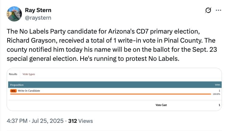 No Labels secured ballot access in Arizona to advance a presidential campaign. So when non-presidential statewide candidates began running under its banner in 2024, the party sued to stop it, but eventually got shut down by an appeals court.