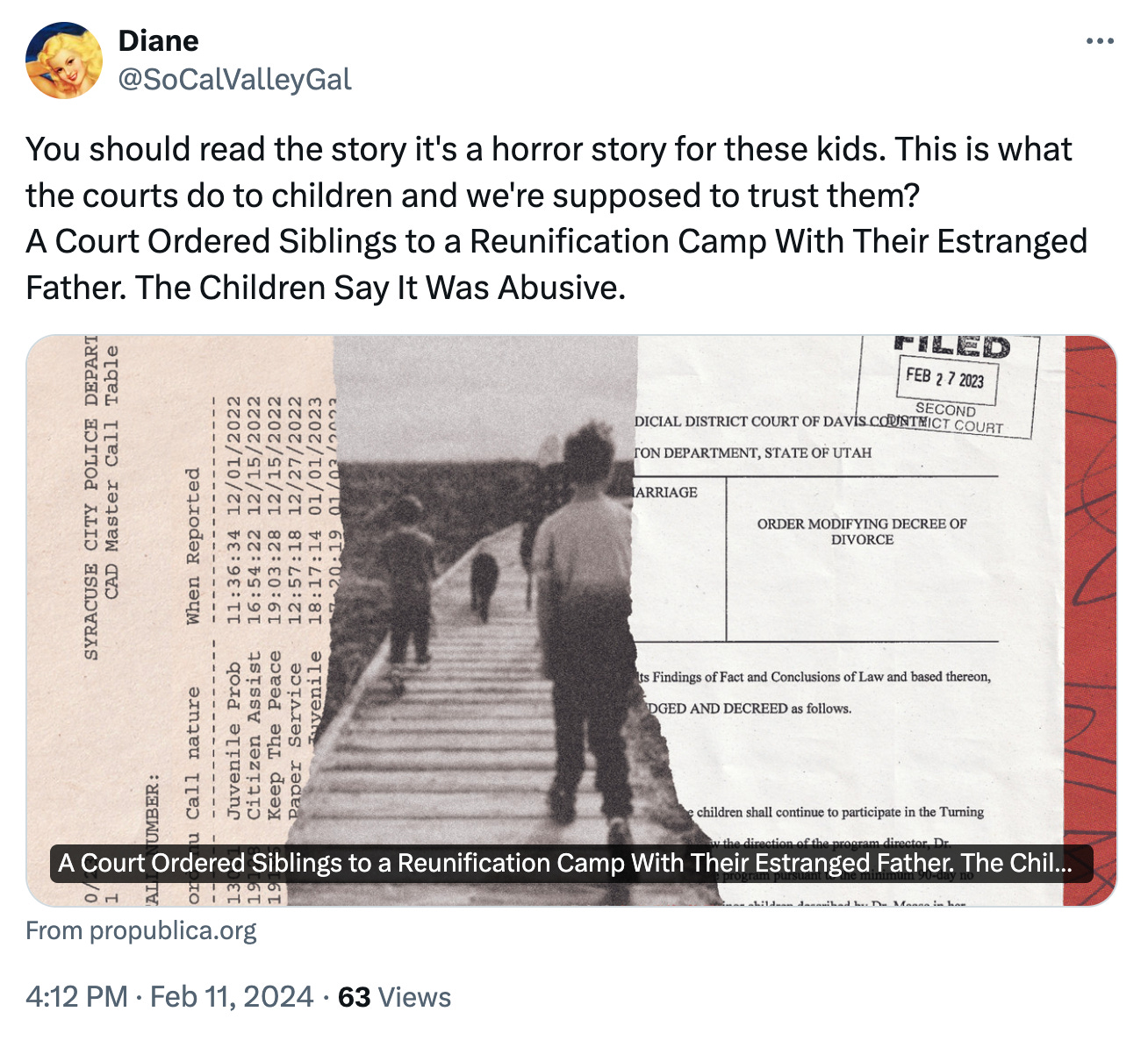 Giving the children a say: A pair of Senate bills would effectively ban reunification camps that temporarily house children before placing them in the custody of a parent they don’t want to be with. The kids aren’t allowed to have communication with their preferred custodian, and the camps they attend before the transfer are rife with issues, the University of Arizona Don Bolles Fellow Leah Britton reports. Republican Sen. Shawnna Bolick’s SB1372 and SB1373 would ban reunification treatment under certain circumstances and require courts to consider the preferred custody arrangement of children 14 or older.