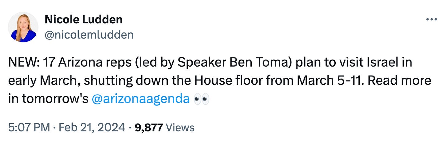 We broke the news about 17 House lawmakers taking a junket trip to Israel mid-session, stalling pressing legislation and committee hearings in the meantime. Priorities, people!