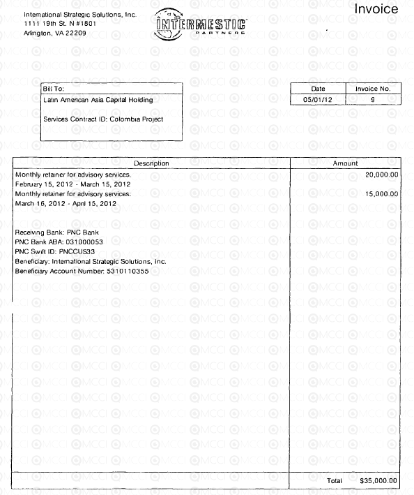 Lopez’s filed one of these invoices seemingly designed to obscure. In Lopez’s case, the invoice requests payment for the “Colombia Project.”