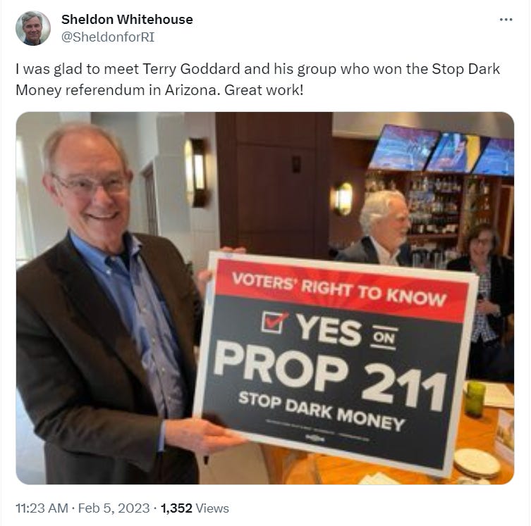 Knowing who’s funding politicians is clearly a priority for voters, as they said during last year’s election when more than 72% of voters supported Prop 211, which aims to shine some light on political dark money.