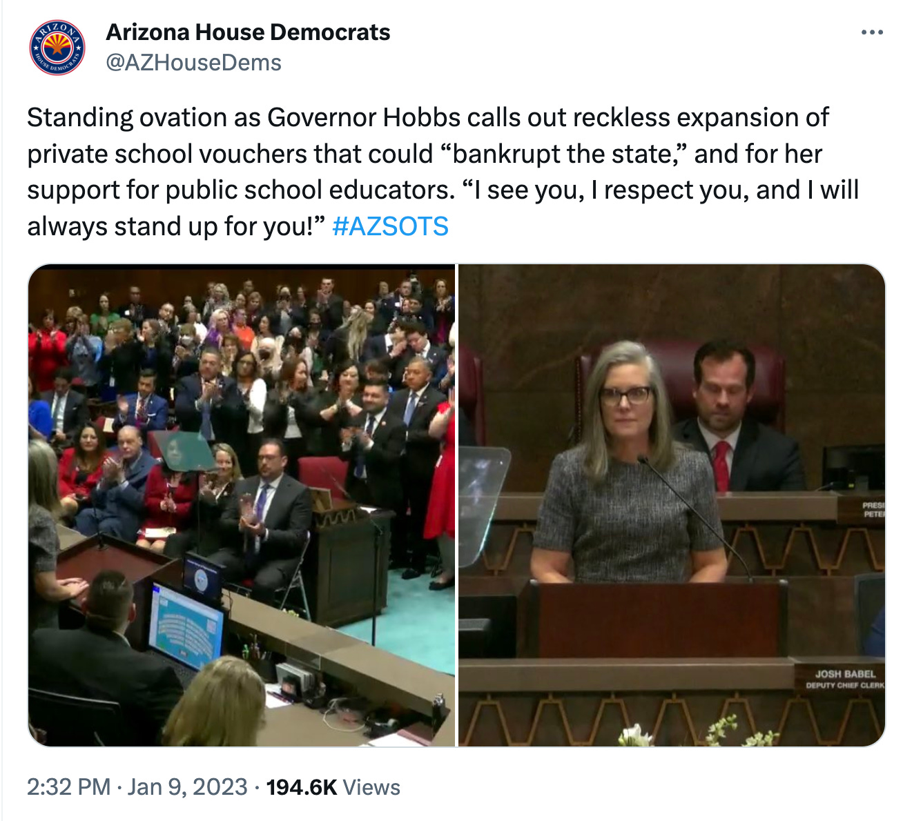Then came Democratic Gov. Katie Hobbs, who delivered a budget proposal calling for an end to the voucher program.