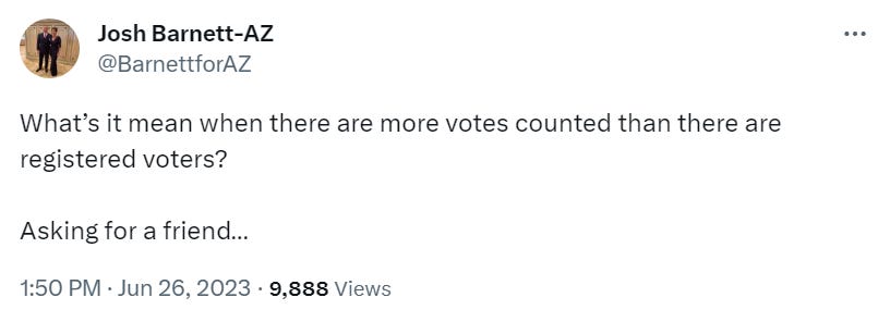 Speaking of fake electors: The U.S. Department of Justice is ramping up its investigation into fake electors in seven states, some of whom were granted immunity for their testimony. It’s not clear whether the DOJ is focusing on Arizona Sens. Jake Hoffman and Anthony Kern and the other fake electors from Arizona, the Republic’s Ryan Randazzo reports, but Attorney General Kris Mayes says she has an “ongoing “ investigation into the matter. The thought of talking about it was enough to send Hoffman scrambling for a place to hide: