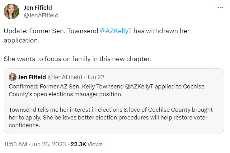 Yay public records?: A Maricopa County Superior Court judge didn’t dismiss Kari Lake’s bid to get ballot envelopes as part of her neverending election lawsuit, the Capitol Times’ Kiera Riley reports, but the judge didn’t officially side with Lake either. Judge John Hannah said that just because counties have traditionally believed those aren’t subject to public records laws, that doesn’t necessarily make it true.