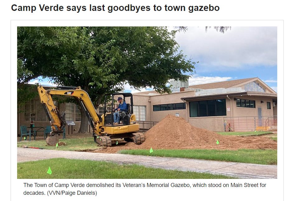 And let’s pour one out for “the town gazebo” in Camp Verde, which ended its decades of service providing shade to residents, per the Camp Verde Bugle.