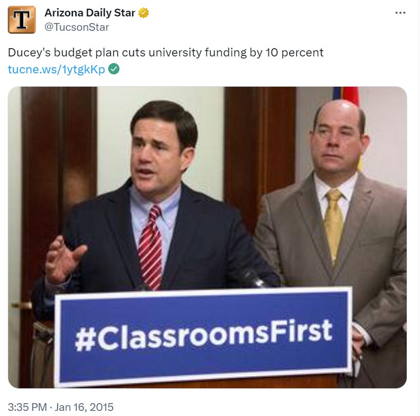 2003 wasn’t a quick legislative session: It took until June for policymakers to reach an agreement. And calling that budget an agreement might be overstating it, considering Napolitano used a line-item veto to slash many of the cuts that Republican lawmakers proposed.
